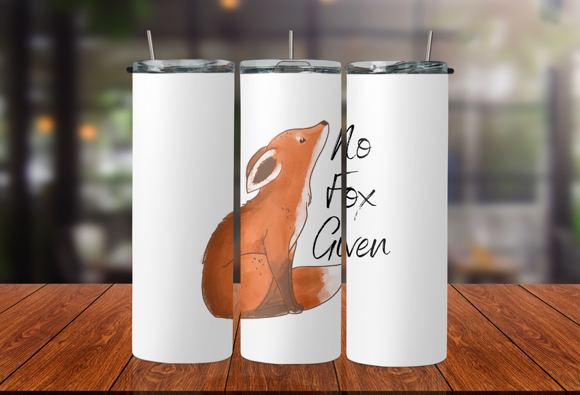 Flaunt your carefree attitude with our "No Fox Given" 20oz tumbler. Adorned with a clever fox image, this tumbler is perfect for those who appreciate humour with their hydration. Keep your drinks just right, hot or cold, in this playful, durable tumbler that's as bold as you are. Grab yours and show off your foxy side!