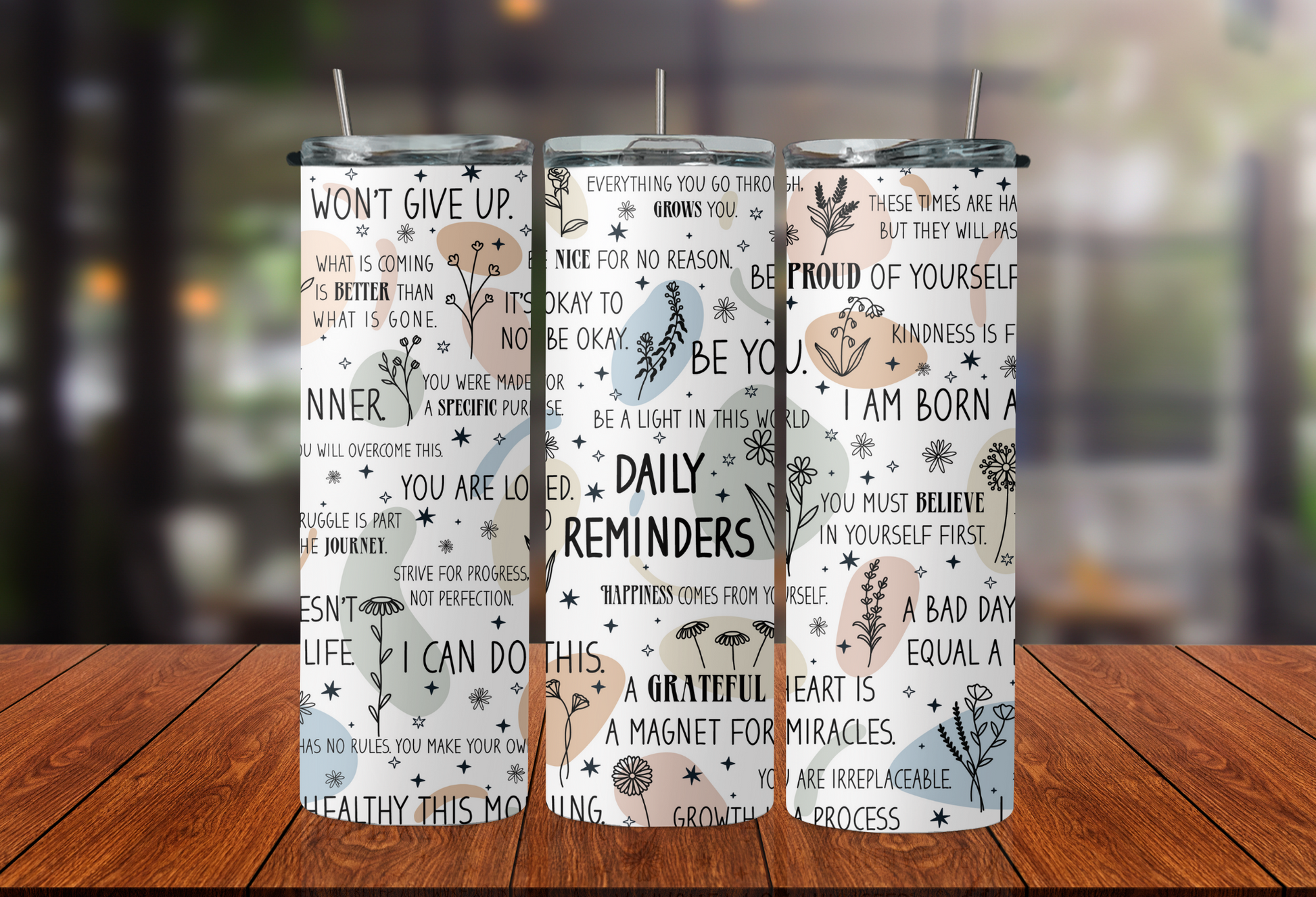 Carry inspiration with every sip from our "Positive Vibe" tumbler, blanketed in empowering positive affirmations. This 20oz tumbler is not just a drink container, it's a daily dose of motivation, keeping your beverages and spirits high throughout the day. Embrace a hydrating experience that celebrates positivity!