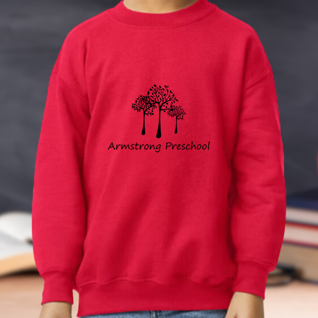 Embrace comfort and show your support with our Armstrong Preschool Youth Crewneck Sweater. Perfect for every child, each purchase contributes 10% to the school, enhancing our children's learning journey. Buy now and be a part of their future!