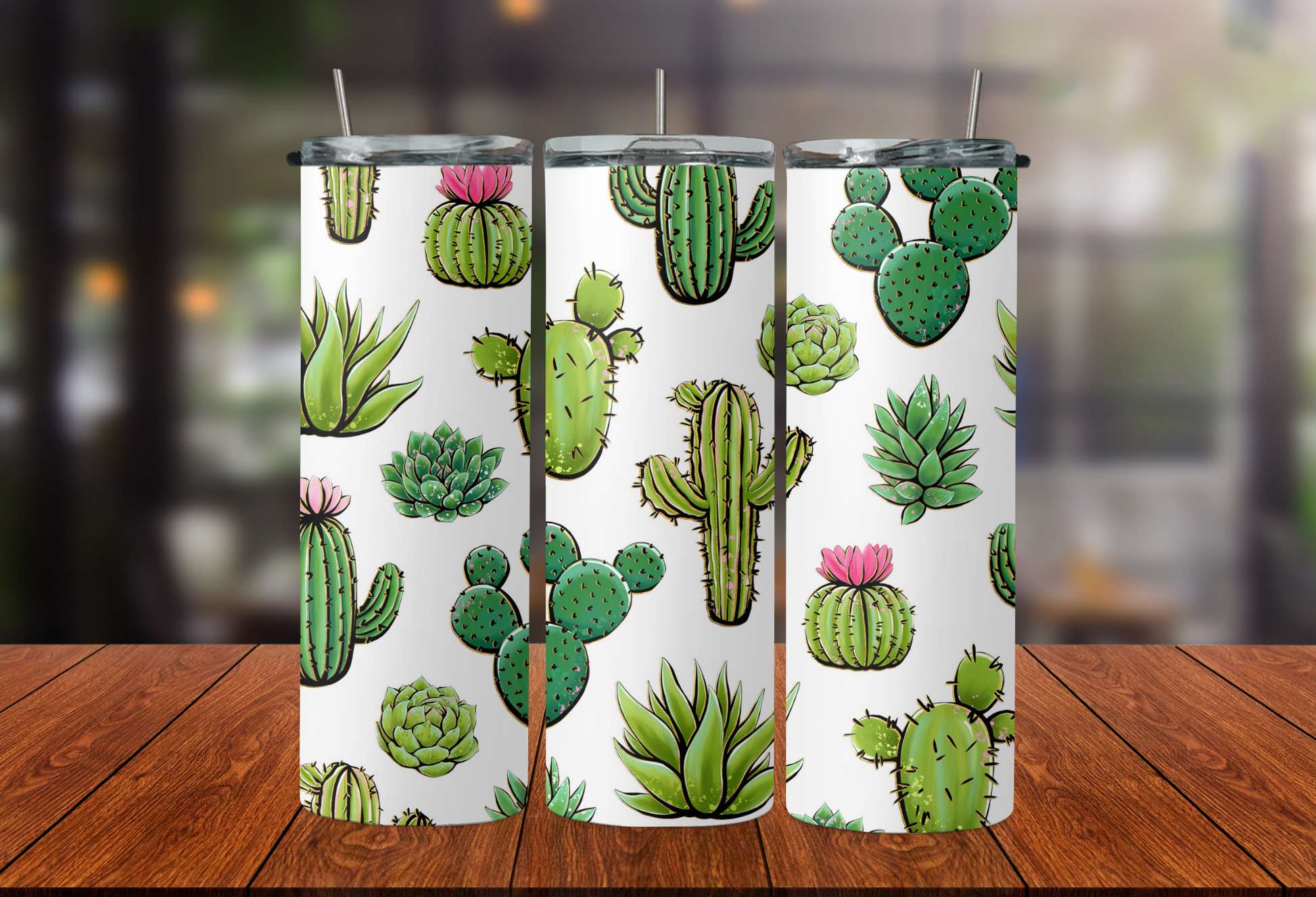 Quench your thirst with our cactus-covered 20oz tumbler, a nod to desert beauty. Ideal for hot or cold beverages, this durable tumbler brings the spirit of the Southwest to your daily hydration. Perfect for plant lovers and admirers of prickly charm!