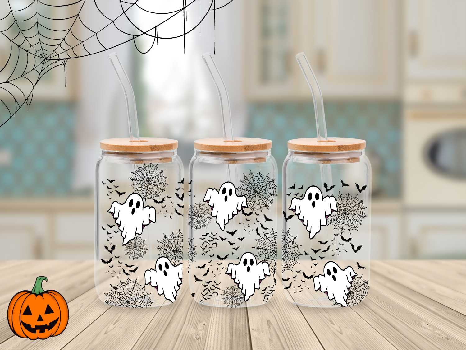 Add a little spook to your morning routine with this 16oz frosted glass can, adorned with playful ghosts and intricate spider webs. Perfect for those who love a touch of Halloween all year round, this unique glass can blends style and function with a frosted finish that keeps your drinks looking cool and feeling refreshing. Whether you're sipping your favorite cold brew or just embracing the eerie vibes, this glass is a must-have for any drinkware collection.